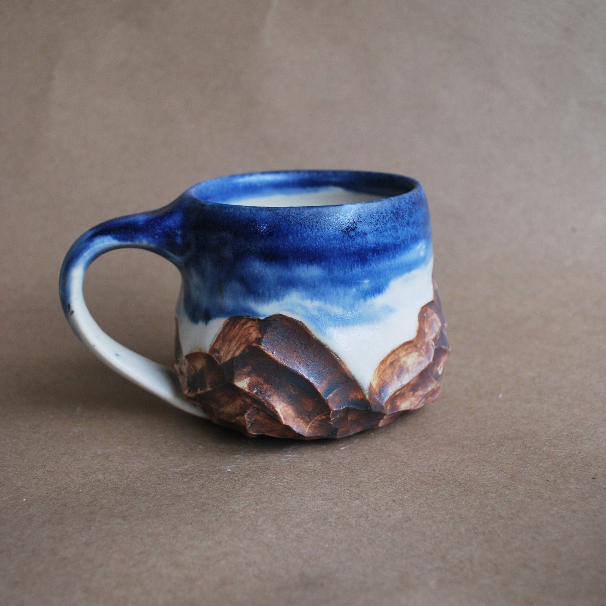 This is the classic 12 oz Mountain Mug, measuring approximate 3.25" tall. This mug is the perfect size for the first cup of hot coffee or tea of the day. This style has been tweaked and altered over the last 6 years to get where we are, and I quite like how these have turned out!